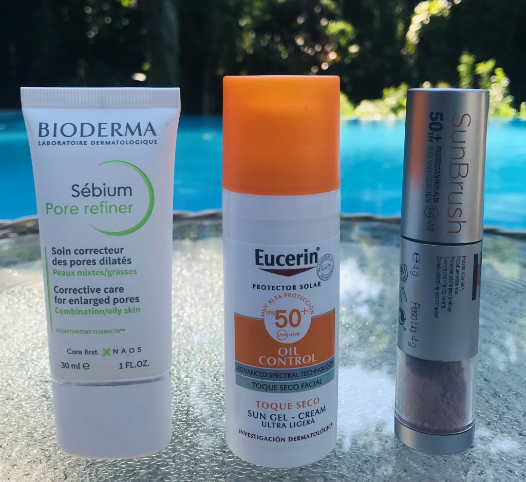 Probé usar la crema matificante Effaclar Mat de La Roche-Posay (reseña aquí) debajo de este protector solar, pero esa combinación no me resultó porque se formaban como «pelotitas» de producto.