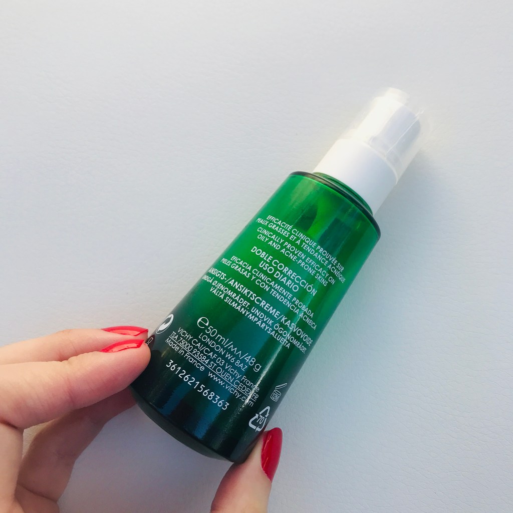 España: “purifica tu piel día tras día con la hidratante diaria de Vichy para pieles grasas y con tendencia acneica, potenciada por ingredientes dermocosméticos de origen natural para una doble eficacia sobre la piel: