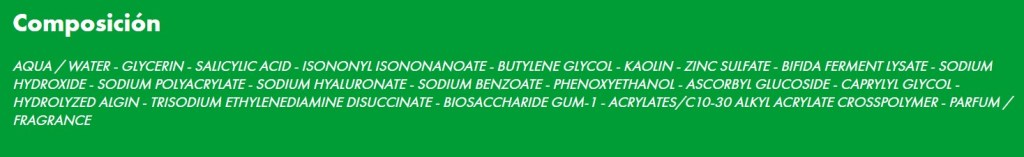 Argentina: “tratamiento diario para pieles grasas y con tendencia acneica, con doble acción que corrige y previene el acné, potenciado con activos dermatológicos de origen natural. Doble acción sobre tu piel: corrige las imperfecciones y previene el acné”.