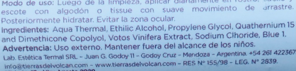 Tierras del Volcán es una marca argentina. Dice que esta loción equilibra la secreción sebácea, refina poros y descongestiona.